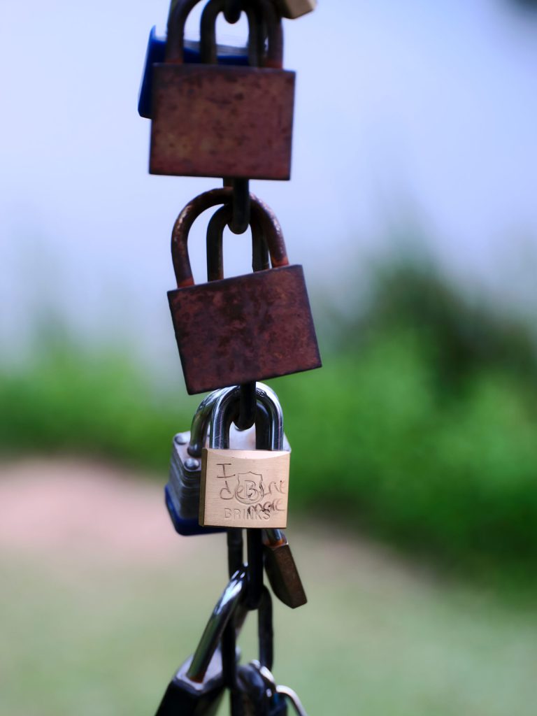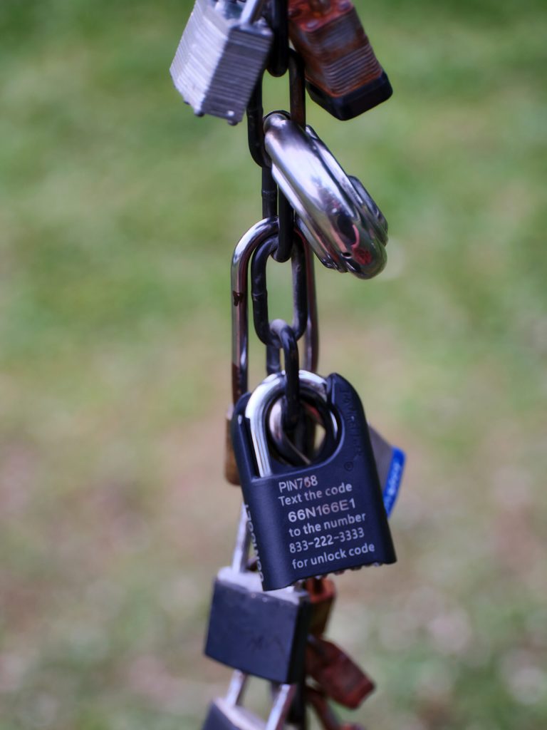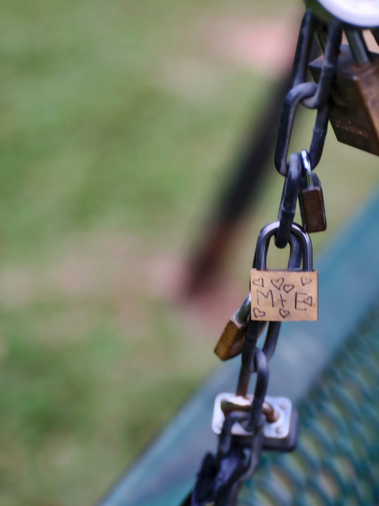 Close to our house there is a lake, and by the lake there is a log cabin. And next to the log cabin there is a swing that people have brought locks to put on. Most of them are couples type locks.
